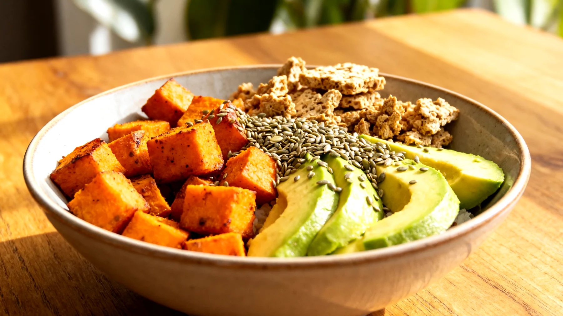 Die Bowl lässt sich hervorragend vorbereiten: Süßkartoffeln können vorgegart im Kühlschrank bis zu vier Tage aufbewahrt werden. Tempeh mariniert über Nacht intensiviert den Geschmack und macht das Gericht noch bekömmlicher. Avocado sollte erst kurz vor dem Servieren hinzugefügt werden, um Braunfärbung zu vermeiden. Ein Spritzer Zitronensaft über der fertigen Bowl erhöht nicht nur die Frische, sondern verbessert auch die Eisenaufnahme aus Tempeh und Hanfsamen – ein cleverer Trick für Menschen mit pflanzlicher Ernährung, die auf ausreichende Eisenversorgung achten müssen.